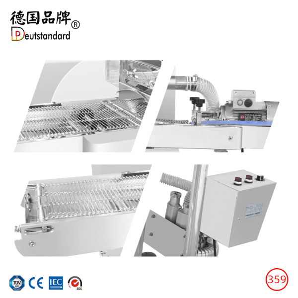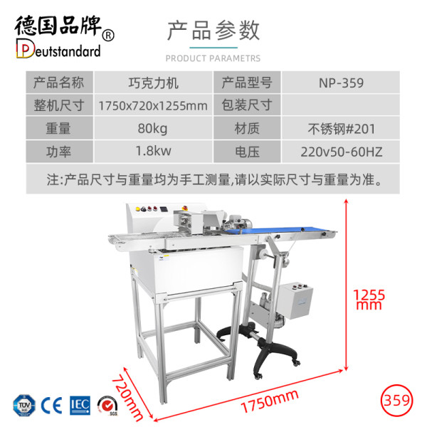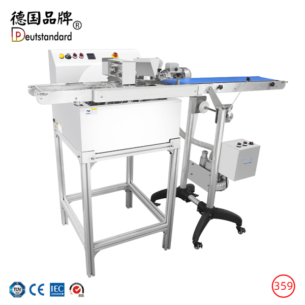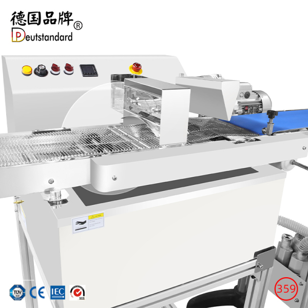 配有输送系统,具有操作简便的优势,进行自动巧克力涂层、浸渍或成